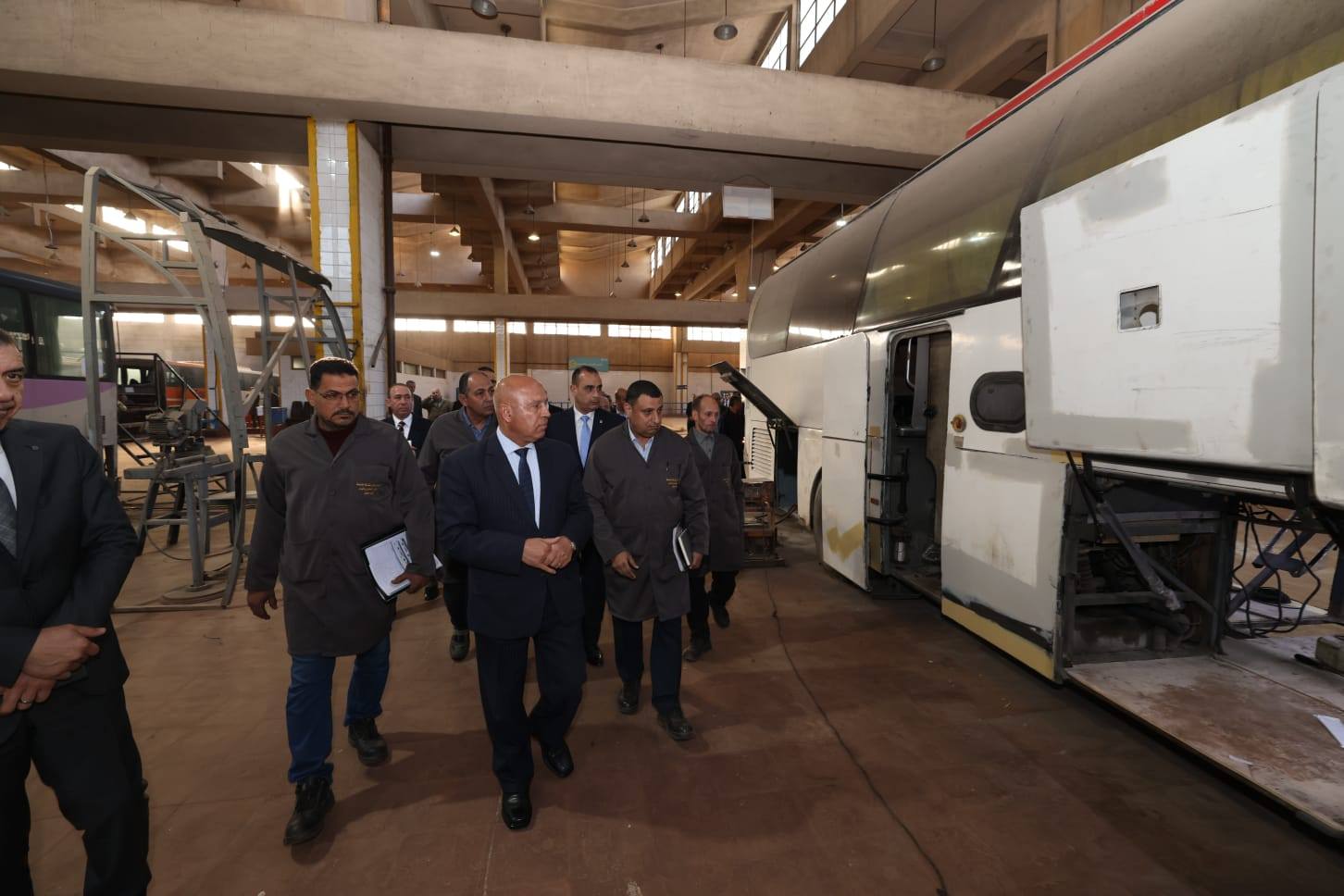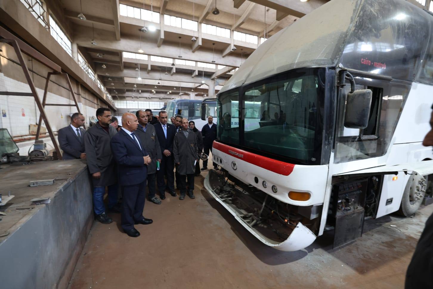 واطلع الوزير خلال الجولة على عرض تقديمي لإمكانيات المركز الذي يمتد على مساحة نحو 46 ألف متر مربع، ويضم ورشًا رئيسية وفرعية، مخازن قطع الغيار، المباني الإدارية، ومركز التدريب. كما اطلع على أعمال تطوير مجمع الورش، التي شملت شبكات الكهرباء ولوحات التوزيع، الإنارة الحديثة، صيانة المعدات والآلات، وتشغيل فرن الدهانات بعد إصلاح أنظمة الهواء والكهرباء والفلاتر، بالإضافة إلى شراء معدات جديدة لبعض الأقسام وتحسين بيئة العمل داخل الورش.