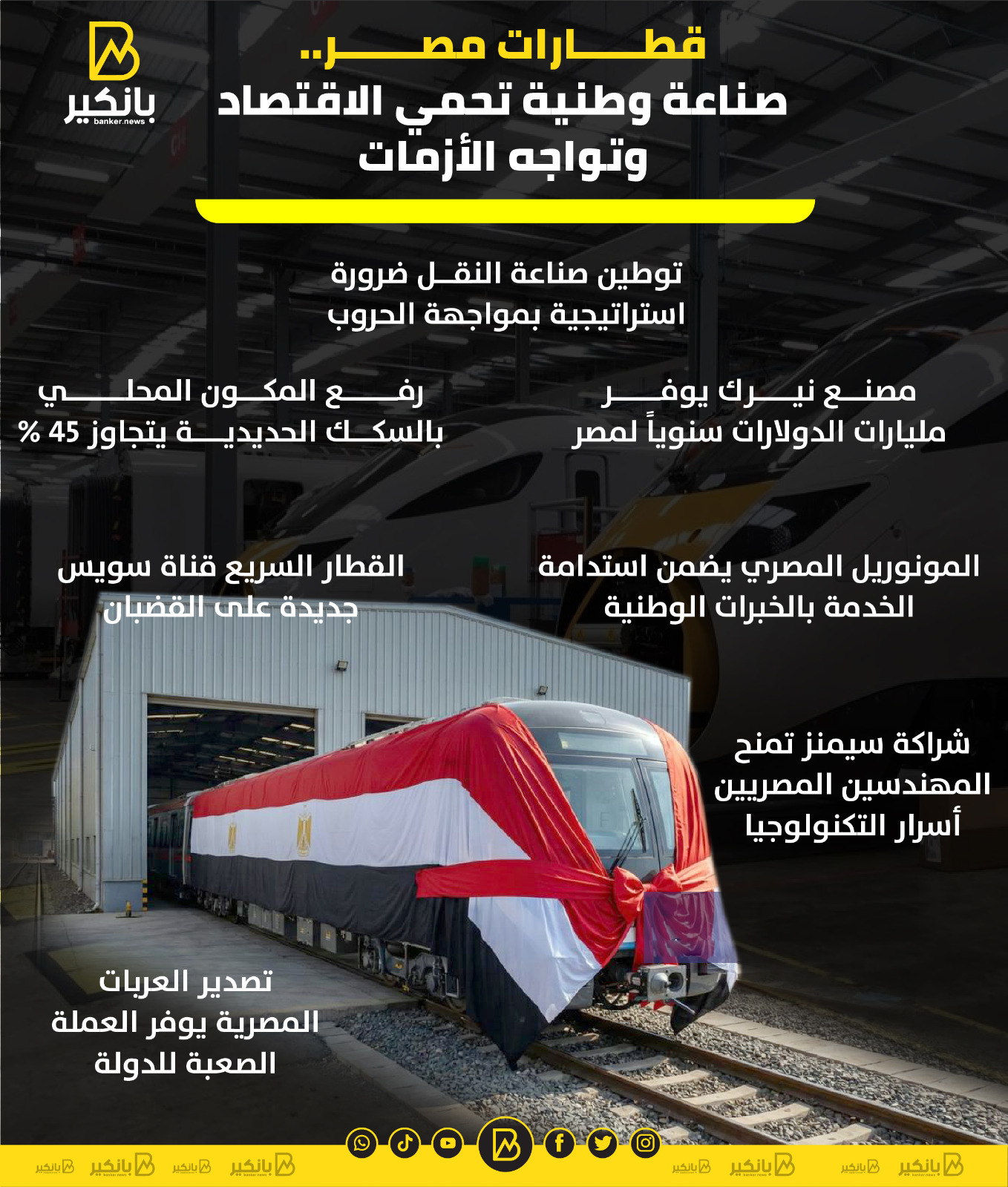 قطارات مصر.. صناعة وطنية تحمي الاقتصاد وتواجه الأزمات (إنفوجراف)