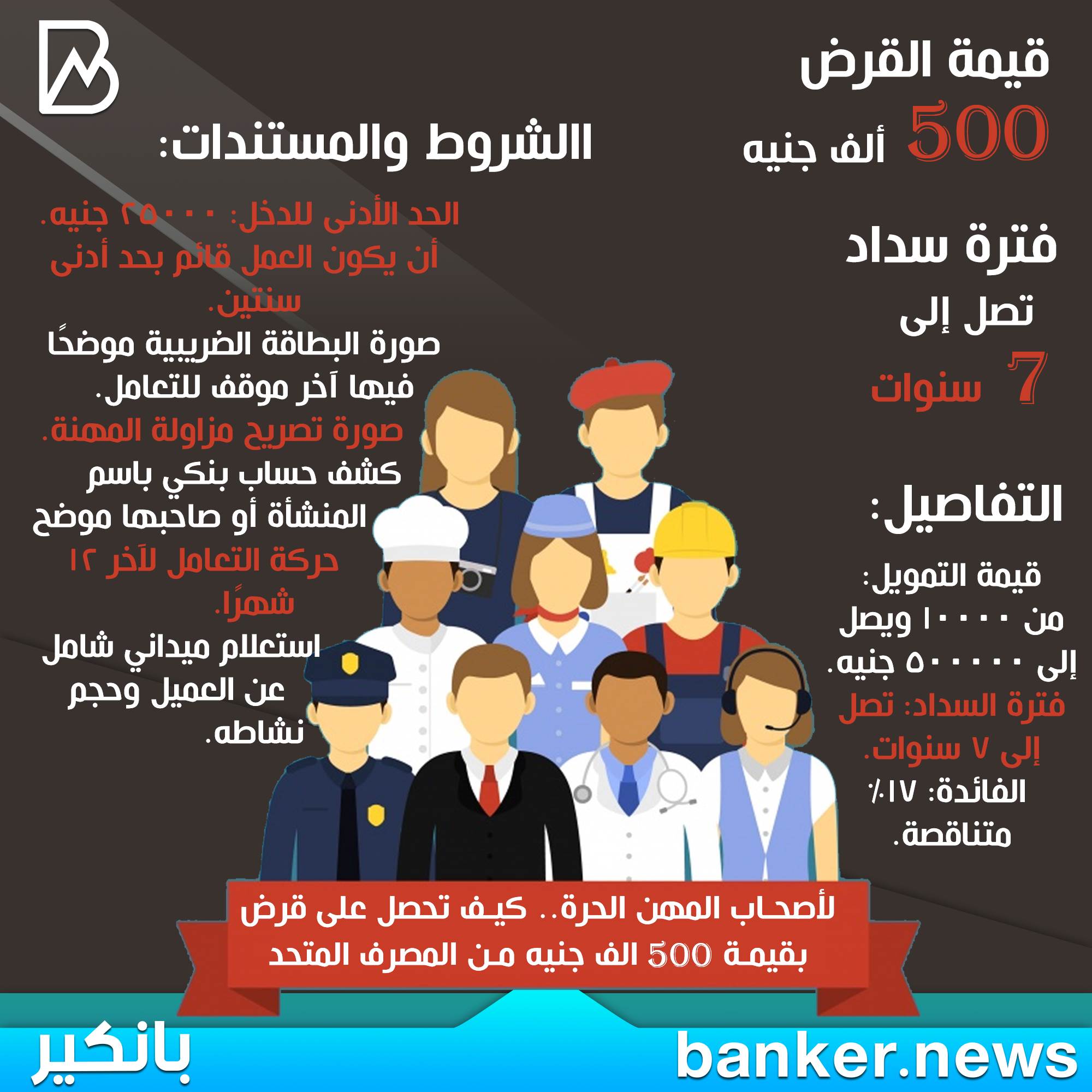 انفوجراف لأصحاب المهن الحرة.. كيف تحصل على قرض بقيمة 500 الف جنيه من المصرف المتحد الخميس 09/يوليو/2020 - 09:25 م facebook twitter whats x facebook twitter rss feed facebook twitter whats