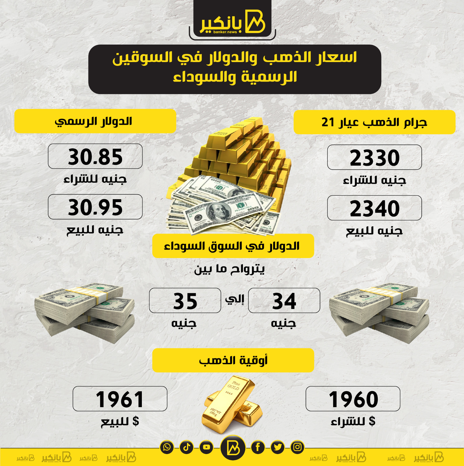 انفوجراف اسعار الذهب والدولار في السوقين الرسمية والسوداء الأحد 11/يونيو/2023 - 01:21 ص facebook twitter whats x facebook twitter rss feed facebook twitter whats